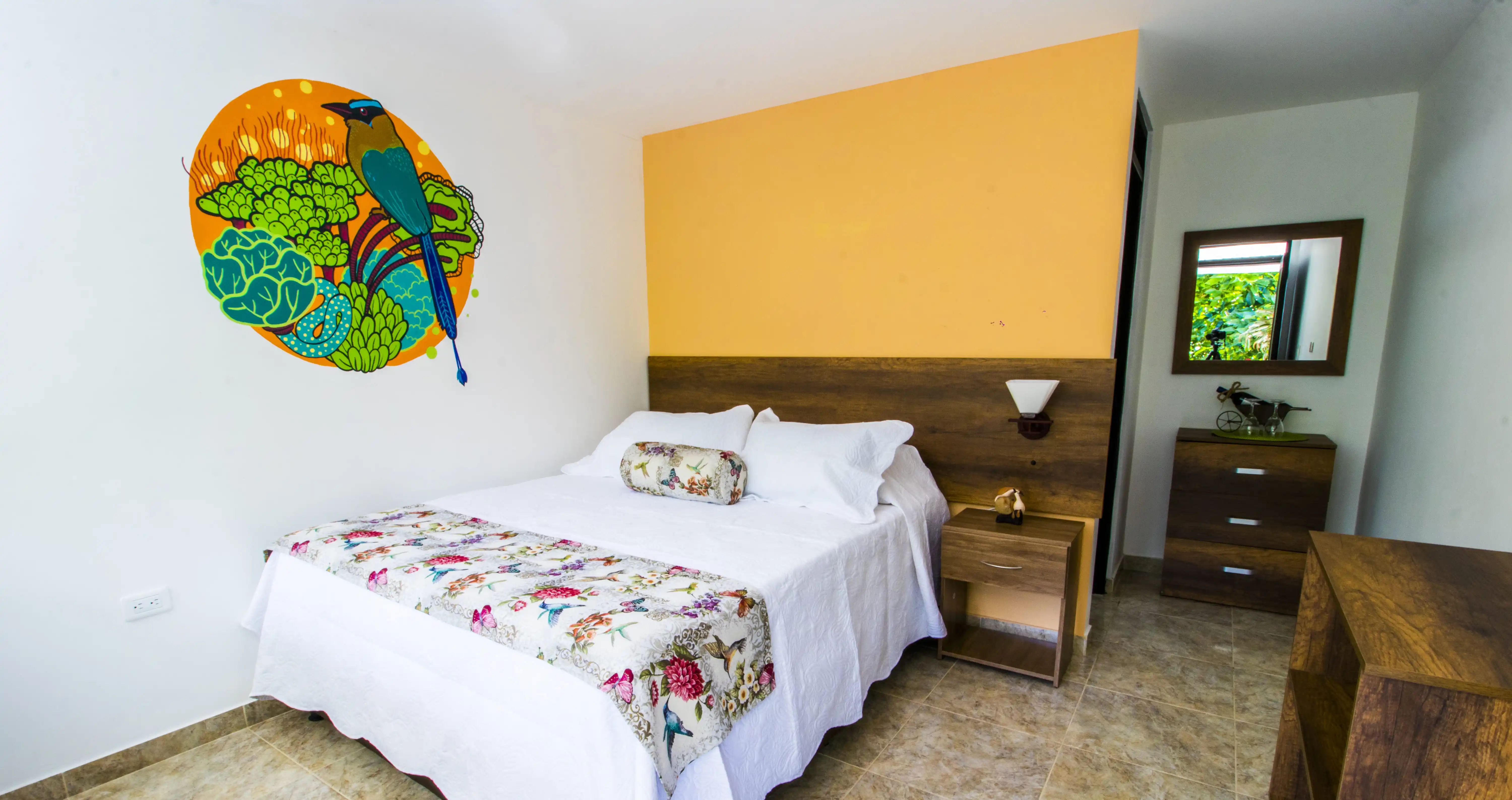 Habitación con baño privado Incluye desayuno Check in: 2:00 p.m. y check out: 12:00 Jacuzzi y piscina área social Nota: Servicio de cena o almuerzo valor adicional: $ 30.000 por plato Tour de naturaleza costo adicional